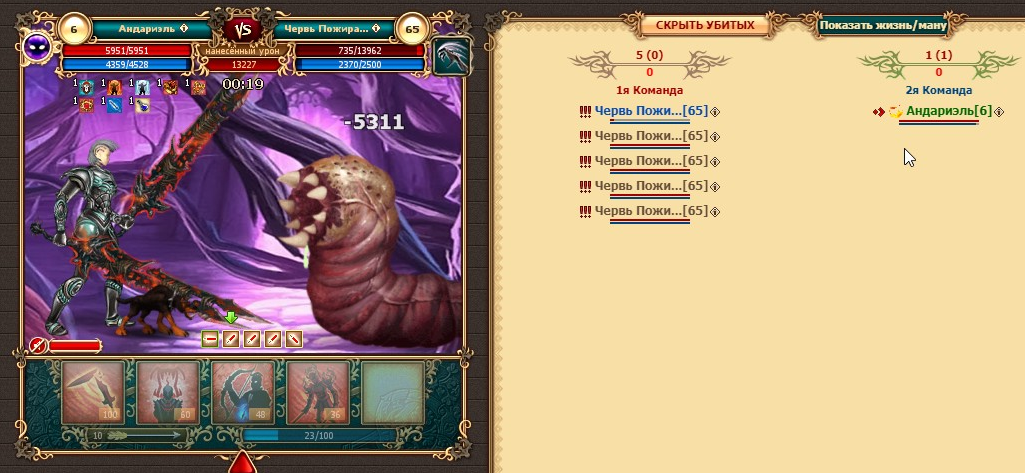 Хасан и червь пожиратель легко убивается, с червём опустошения придётся помучаться. Он самый мощный по здоровью и хилится 4 раза за бой. Убить сложно даже с стихиадой. Помогут в бою тень, Шавры, Ездовое репутации Пустынный Гархан и стрелы. Советую сразу убрать у него ману и наложить пагубу и изъятие сил.