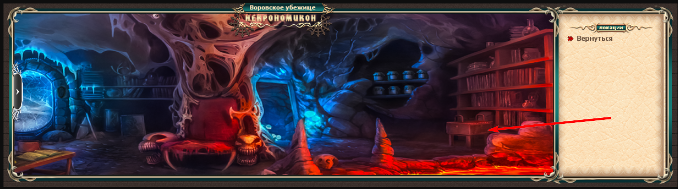 Проходим вглубь и обыскиваем локацию. Справа есть столик, в нём ещё один свиток.