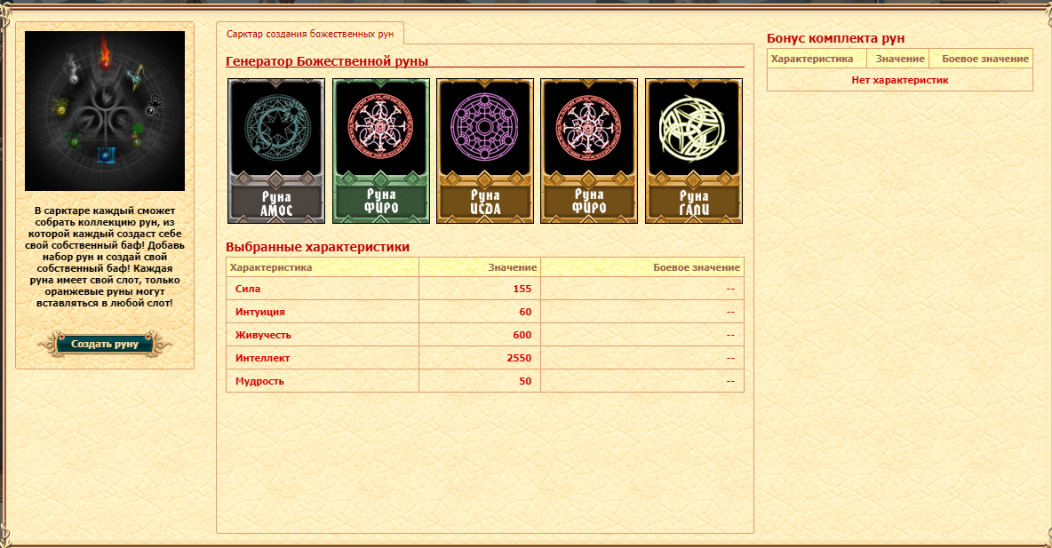 После того как вы вставите руны в Сарктар и нажмете кнопку создать руну, Сарктар создаст благословение, которое можно будет использовать 2 раза!