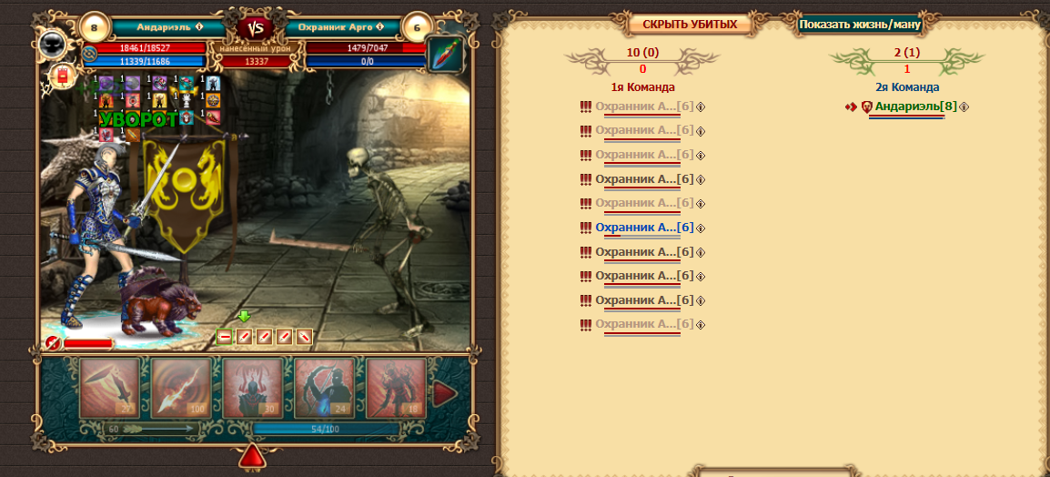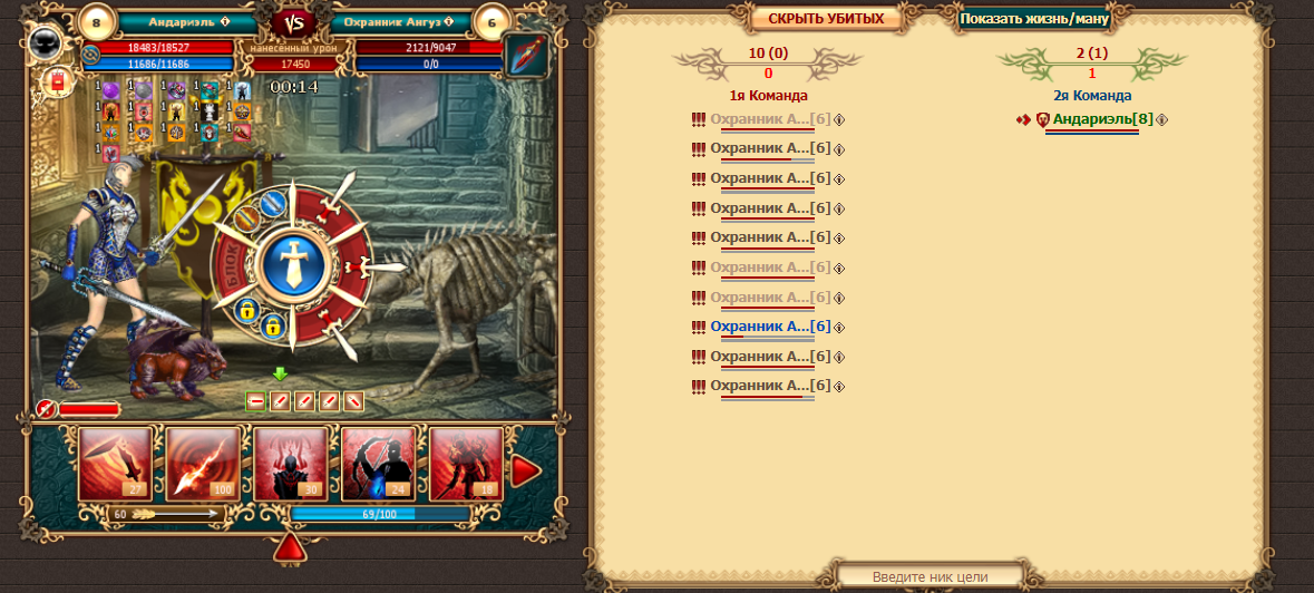 На Вас совершено нападение Охранник Хаганн [6] (8047 хп)
