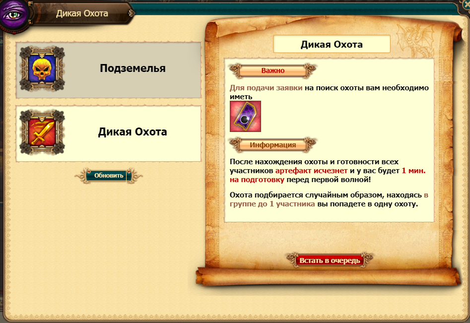 Поиск Дикой охоты.